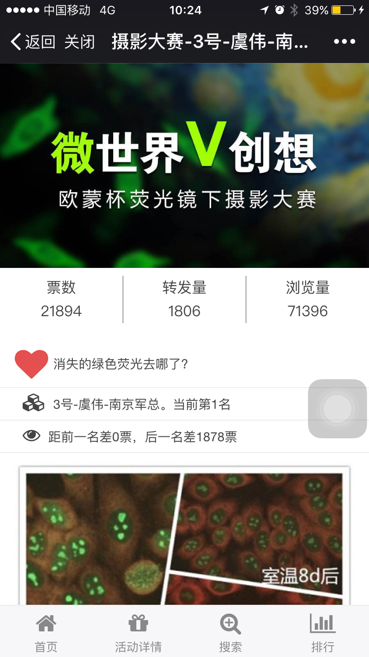“微世界 V創(chuàng)想”歐蒙杯熒光鏡下攝影大賽已落下帷幕,藝術(shù)之旅暫告一段路,但是還有更多的活動和產(chǎn)品期待著您的參與和探索。
