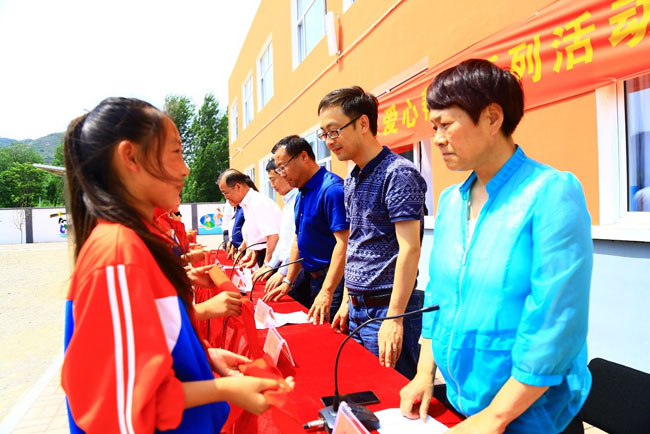 與志愿者們共同見證主題為 “追夢同行 預(yù)見未來”的愛心幫扶公益行動(dòng)在葫蘆島市南票區(qū)村小落地生根的領(lǐng)導(dǎo)和嘉賓有:歐蒙醫(yī)學(xué)診斷(中國)有限公司亞太區(qū)總裁李川先生、中共葫蘆島市南票區(qū)委書記郭毅同志、歐蒙醫(yī)學(xué)檢驗(yàn)所總監(jiān)張欣先生、南票區(qū)政府副區(qū)長趙婧同志、中國科學(xué)院心理研究所、中國科學(xué)院大學(xué)王晶教授、南票區(qū)教育局局長樊漢權(quán)同志、中共缸窯嶺鎮(zhèn)黨委書記吳春雷同志、南票區(qū)政府教育督導(dǎo)室主任孫世俠同志、南票區(qū)全民健身指導(dǎo)中心主任馬良同志。