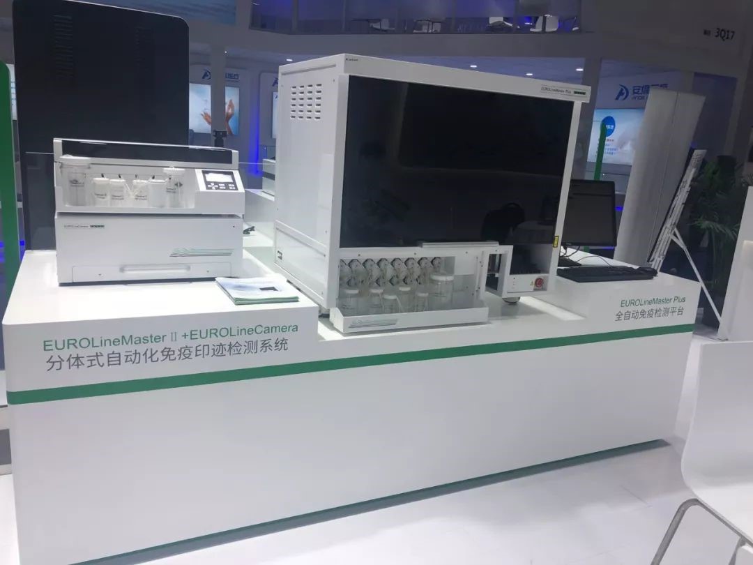 2019年,EUROLINE自動(dòng)化平臺(tái)又有一名新成員榮耀加入——EUROLineMaster II(全自動(dòng)免疫印跡儀)。它是在原經(jīng)典印跡產(chǎn)品EUROBlotMaster II (歐蒙第二代全自動(dòng)免疫印跡儀)基礎(chǔ)上的全新升級(jí)產(chǎn)品,不僅外觀設(shè)計(jì)精致小巧,更加節(jié)省空間,還具有高安全性、避免交叉污染、精確分液等優(yōu)勢(shì)特點(diǎn)。EUROLineMaster II與EUROLineCamera配套組成分體式自動(dòng)化免疫印跡檢測(cè)系統(tǒng),可作為集成式工作站實(shí)現(xiàn)從實(shí)驗(yàn)、風(fēng)干、成像到結(jié)果判讀的全覆蓋,單次檢測(cè)量50人份,更符合基層醫(yī)療機(jī)構(gòu)使用場(chǎng)景。