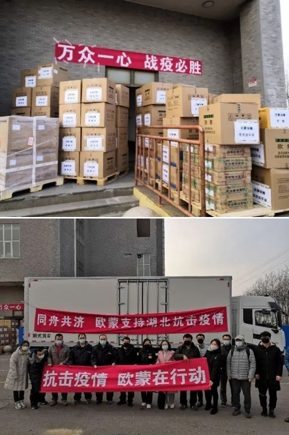 歐蒙一直心系湖北疫區,立即籌集防控物資。為了確保這批緊急籌備的防護物資可以在疫情防控中發揮最大功效,歐蒙進行逐縣、逐區的聯絡,根據疫區實際需求將物資進行合理配置,保障防控物資送達環境艱苦、防控關鍵的基層一線,與老區人民同舟共濟,共筑抗疫防線。