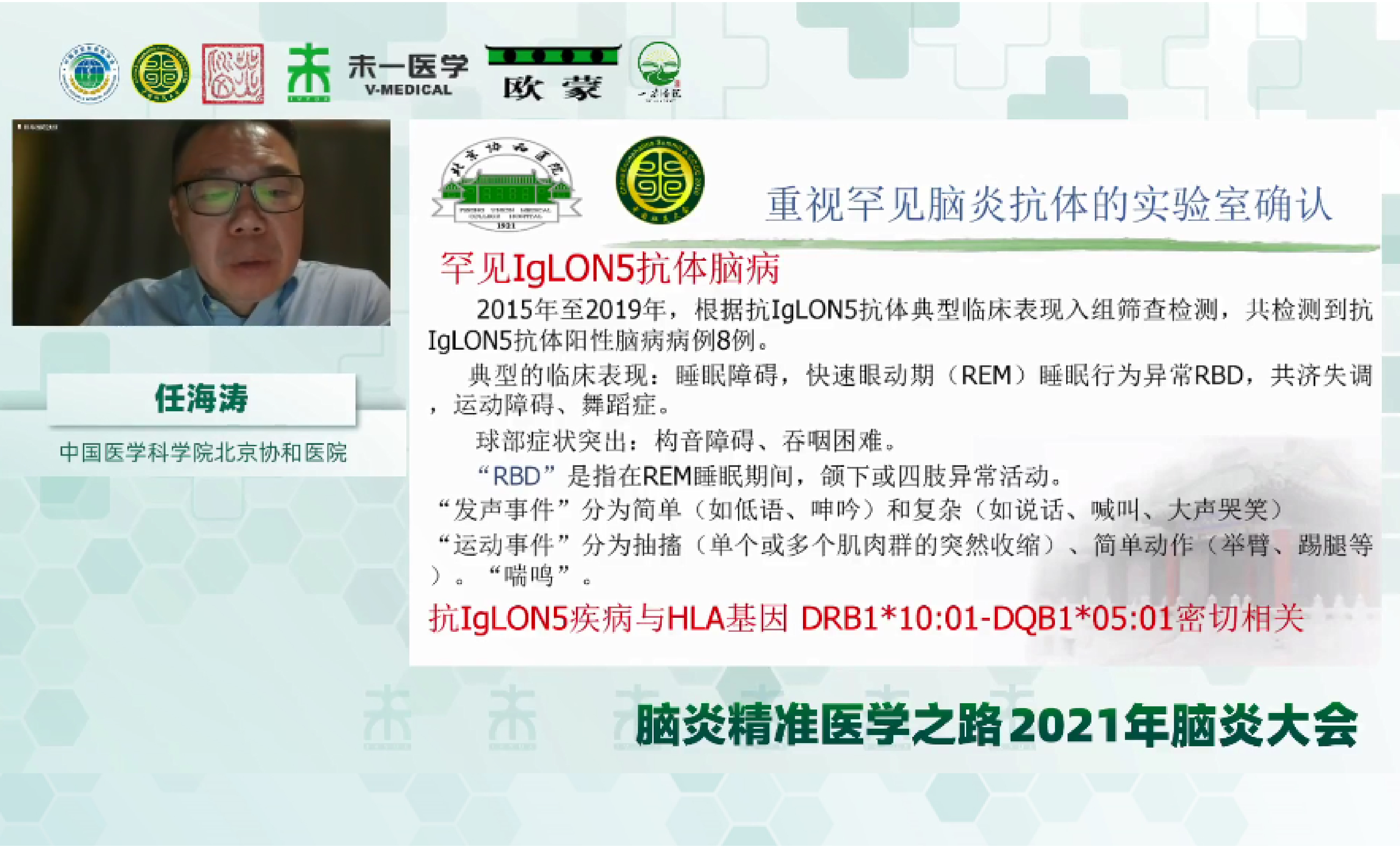 北京協(xié)和醫(yī)院神經(jīng)科病理實(shí)驗(yàn)室任海濤老師詳細(xì)介紹了罕見腦炎抗體的實(shí)驗(yàn)室確認(rèn)。2011年北京協(xié)和醫(yī)院報(bào)道了國內(nèi)首例抗NMDAR腦炎,并建立了以腦脊液抗NMDAR抗體陽性為明確診斷依據(jù)的診斷流程,而單獨(dú)血清抗NMDAR抗體陽性則需進(jìn)一步的驗(yàn)證,同時分享了自免腦炎抗體檢測譜系各指標(biāo)陽性率占比。針對罕見的自免腦炎抗體的檢測需要重視實(shí)驗(yàn)室確認(rèn)方法,如抗DPPX抗體要CBA+TBA聯(lián)合驗(yàn)證,證實(shí)抗體檢測的可靠性;抗IgLON5抗體要聯(lián)合HLA-DRB1*10:01、DQB1*05:01基因驗(yàn)證,并結(jié)合臨床典型癥狀診斷。在過去的十年里,神經(jīng)免疫抗體的不斷發(fā)現(xiàn)和應(yīng)用推動了神經(jīng)系統(tǒng)疾病的診斷與治療。湖南省腦科醫(yī)院向光紅教授作為本環(huán)節(jié)的主持嘉賓,結(jié)合報(bào)告的內(nèi)容進(jìn)行精彩總結(jié)。