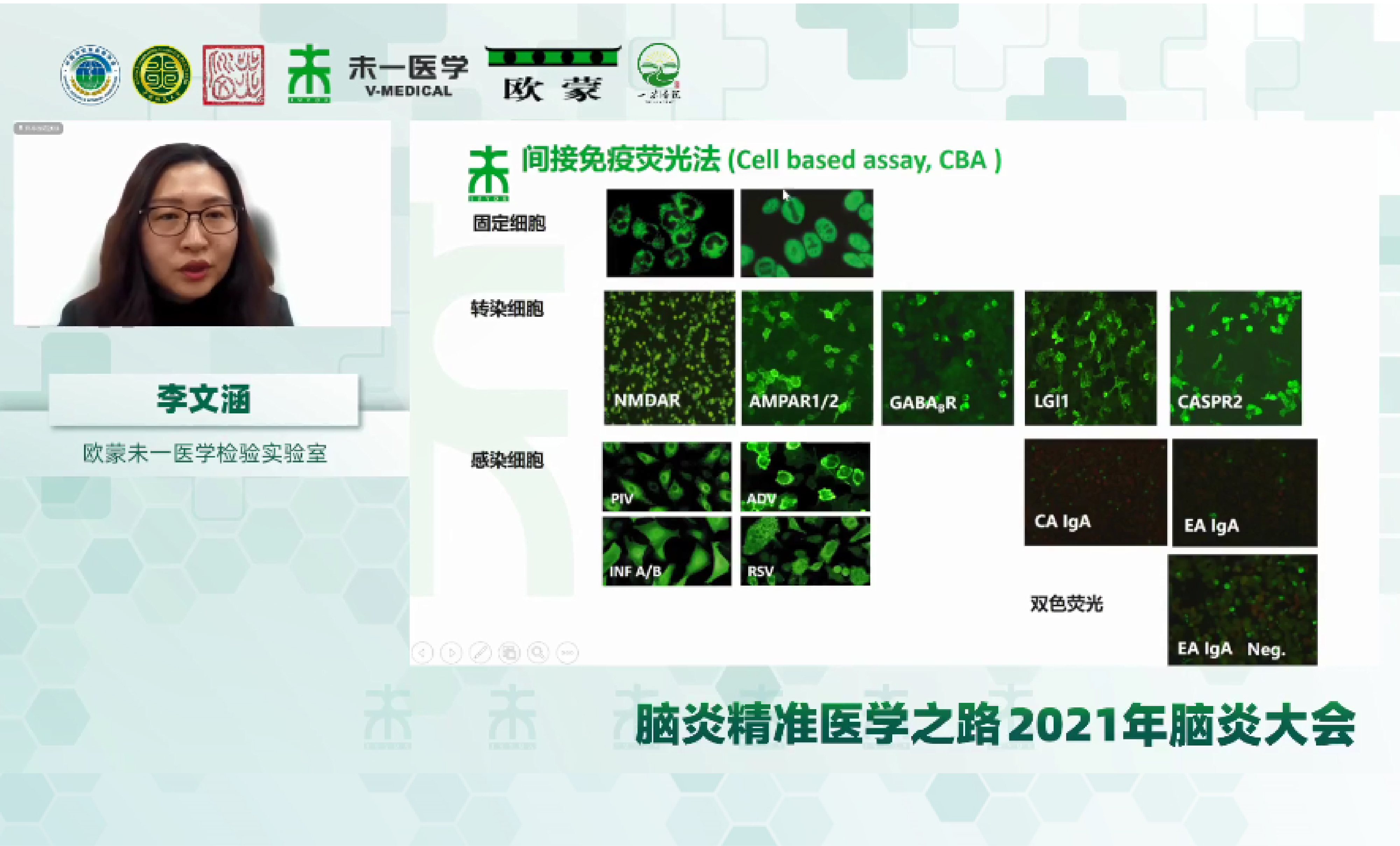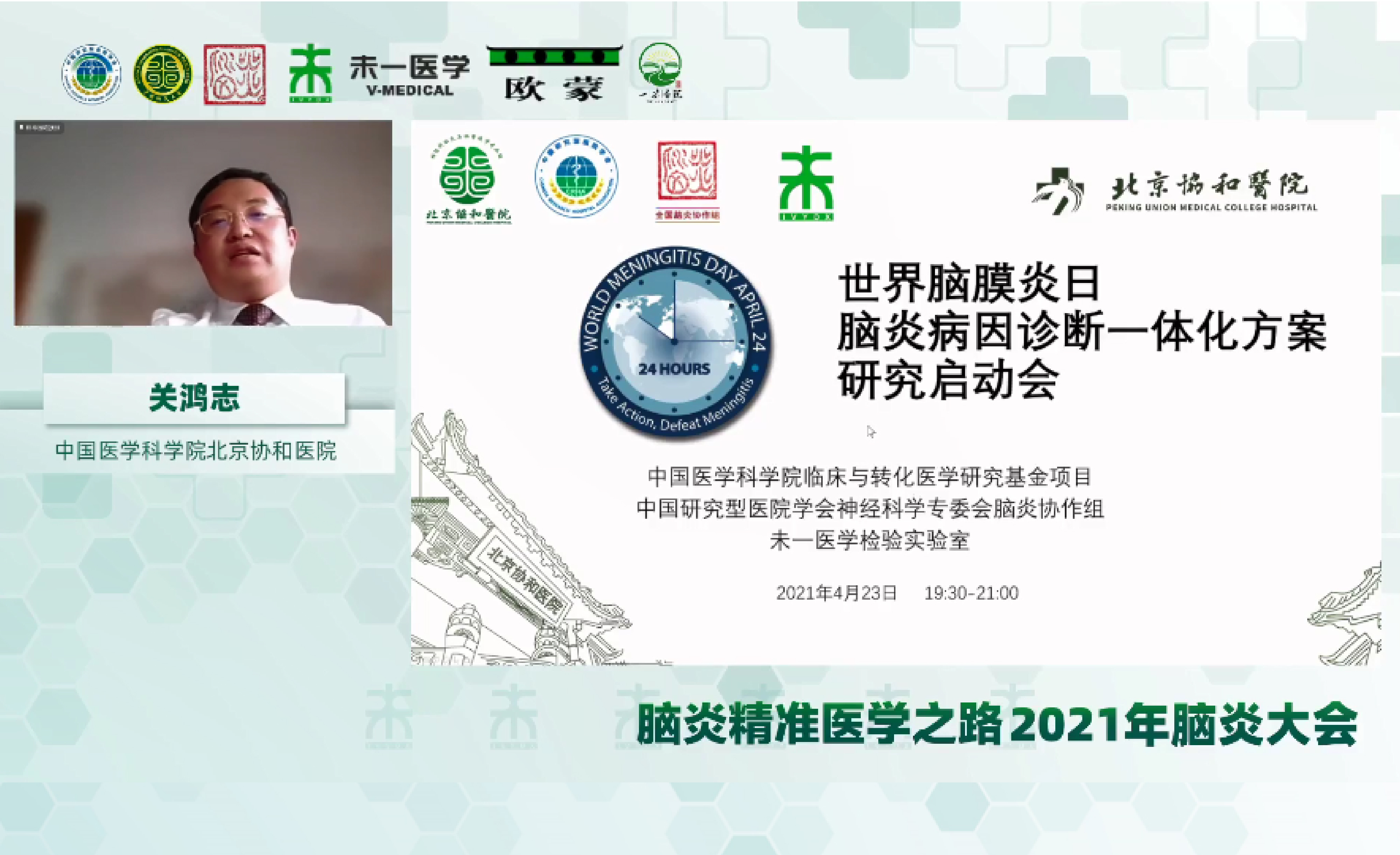 2021年4月23日北京協(xié)和醫(yī)院關(guān)鴻志教授團(tuán)隊(duì)與未一醫(yī)學(xué)共同發(fā)起了全國多中心腦炎病因診斷一體化方案研究項(xiàng)目,目前已有近30家醫(yī)院參與。未一醫(yī)學(xué)作為唯一一家第三方實(shí)驗(yàn)室,為該項(xiàng)目提供樣本檢測以及樣本管理等支持。本次會議上關(guān)鴻志教授回顧近半年腦炎病因診斷一體化方案研究進(jìn)展。對于原因未明的腦炎,通過腦炎一體化項(xiàng)目檢測,協(xié)和醫(yī)院實(shí)驗(yàn)室近兩年發(fā)現(xiàn)了18種抗體,其中與中科院王晶教授團(tuán)隊(duì),應(yīng)用TBA方法,發(fā)現(xiàn)了新型抗小腦浦肯野細(xì)胞抗體-抗Rab6抗體。對于符合入組標(biāo)準(zhǔn)的患者,項(xiàng)目組可以提供免費(fèi)的腦脊液細(xì)胞學(xué)、二代測序宏基因組檢測,同時北京協(xié)和醫(yī)院關(guān)教授團(tuán)隊(duì)可提供遠(yuǎn)程線上會診。最后,關(guān)教授邀請線上的醫(yī)學(xué)同仁共同參與到腦炎一體化項(xiàng)目,齊力推動腦炎病因精準(zhǔn)診斷前行。未一研究院仲人前教授作為本環(huán)節(jié)的主持嘉賓,結(jié)合報(bào)告的內(nèi)容進(jìn)行精彩總結(jié)。