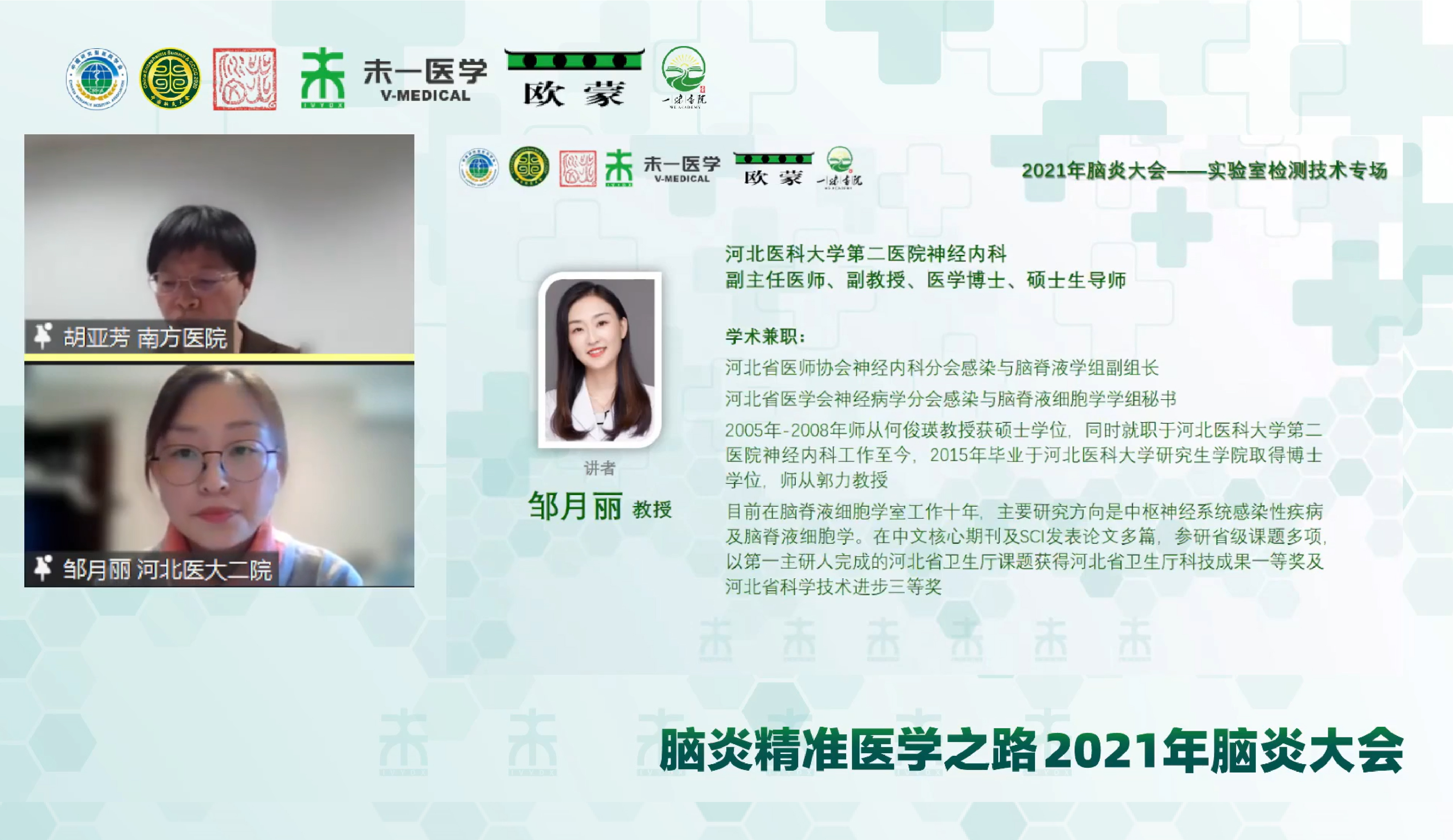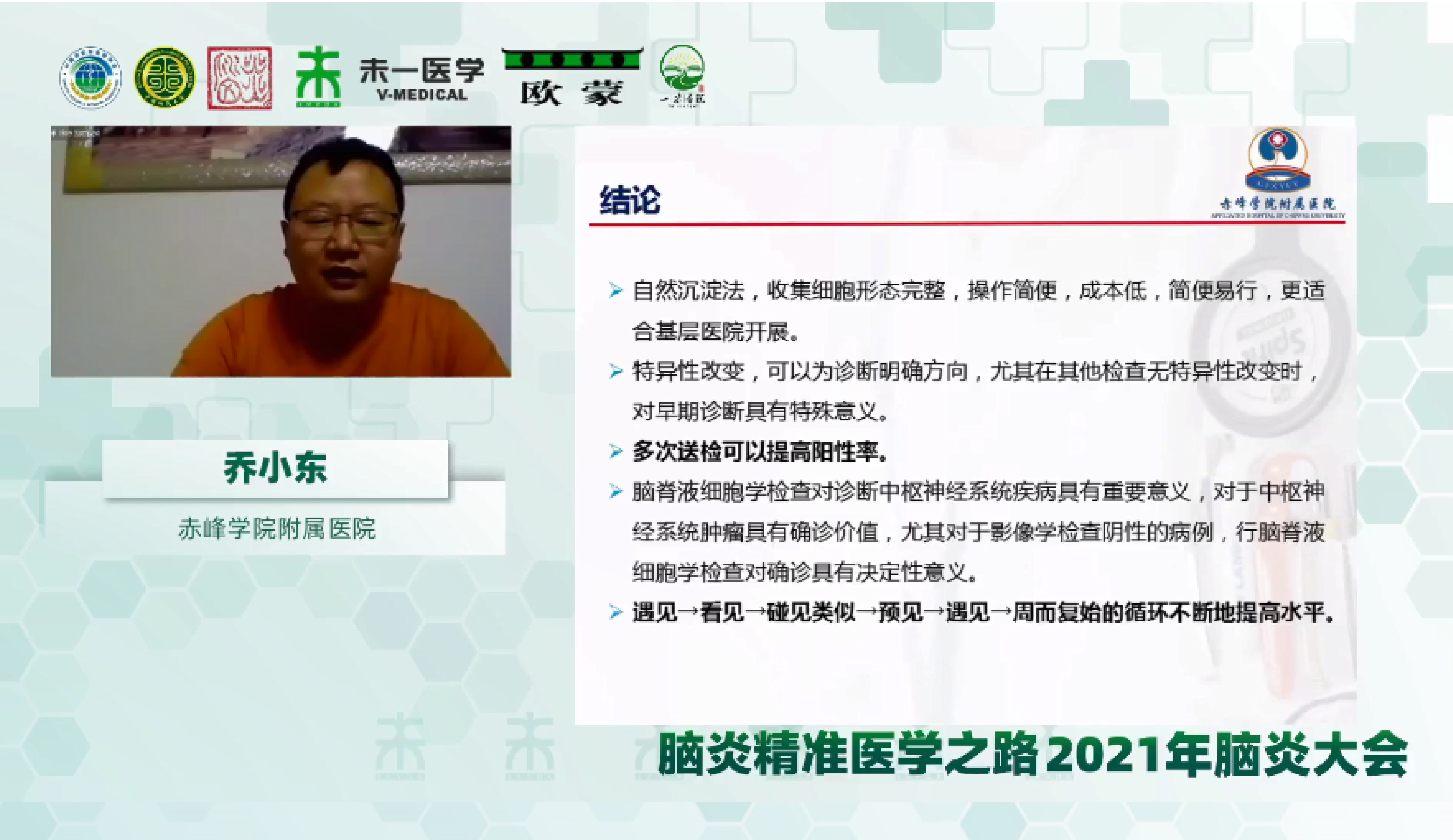 2019年腦炎大會首次舉辦,開啟“腦炎精準(zhǔn)醫(yī)學(xué)之路”,2021腦炎大會延續(xù)“腦炎精準(zhǔn)醫(yī)學(xué)之路”主題,神經(jīng)免疫專場、感染與小兒神經(jīng)專場已成功舉辦,12月19日腦炎大會第三專場-實(shí)驗(yàn)室檢測技術(shù)專場圓滿結(jié)束,2021腦炎大會完美收官,累計(jì)8.4萬余人線上參與。本次會議由中國研究型醫(yī)院學(xué)會神經(jīng)科學(xué)專委會主辦,北京協(xié)和醫(yī)院神經(jīng)科、中國科學(xué)院承辦,未一醫(yī)學(xué)檢驗(yàn)實(shí)驗(yàn)室、歐蒙醫(yī)學(xué)診斷(中國)有限公司、一味書院協(xié)辦。來自國內(nèi)的神經(jīng)領(lǐng)域、檢驗(yàn)領(lǐng)域及其他相關(guān)領(lǐng)域的醫(yī)學(xué)同仁線上齊聚,共同探討腦脊液細(xì)胞學(xué)、抗體檢測等檢測技術(shù)在臨床中的應(yīng)用,促進(jìn)臨床與檢驗(yàn)之間的緊密合作,推動腦炎精準(zhǔn)診療前行。