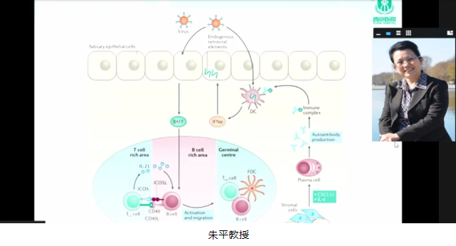 作為本次會(huì)議的另一線上報(bào)告專家,空軍軍醫(yī)大學(xué)(第四軍醫(yī)大學(xué))西京醫(yī)院臨床免疫科主任朱平教授對(duì)干燥綜合征的診治和研究進(jìn)展進(jìn)行了詳細(xì)介紹。其中對(duì)干燥綜合征疾病的概述、診斷指標(biāo)意義、結(jié)果的解讀等均進(jìn)行了深入的講解。并結(jié)合多個(gè)現(xiàn)有的臨床診斷指南分析了干燥綜合征相關(guān)特異性自身抗體檢測(cè)及其他檢查手段在疾病診斷與鑒別診斷中的實(shí)際應(yīng)用價(jià)值。最后,朱平教授強(qiáng)調(diào)了干燥綜合征是一種起病隱匿,涉及多學(xué)科,臨床表現(xiàn)多樣的慢性、系統(tǒng)性自身免疫病。因此,目前干燥綜合征疾病發(fā)病機(jī)制的研究以及合并多系統(tǒng)疾病的診治確實(shí)充滿了挑戰(zhàn)。