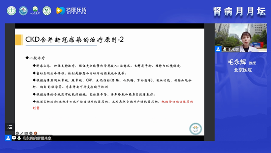毛教授為論壇做了題為《新冠感染的診治》的精彩報告,重點闡述了新冠感染的診斷和治療的重要原則,這些診療原則有助于慢性腎臟病合并新冠感染患者更多獲益。新冠感染的診斷需依據(jù)流行病學(xué)、臨床表現(xiàn)、實驗室檢查等方面的綜合分析,其中新冠病毒核酸檢測陽性為確診的首要標(biāo)準(zhǔn)。新冠感染的臨床分型包括輕型、中型、重型和危重型。臨床需要重點關(guān)注重型和危重型高危人群。流行病學(xué)研究顯示,慢性腎臟病(CKD)患者屬于新冠感染的重型/危重型的高危人群,CKD5D患者(透析患者)新冠感染的發(fā)病率高于CKD非透析患者,CKD合并新冠感染死亡風(fēng)險是非CKD患者的10-21倍。