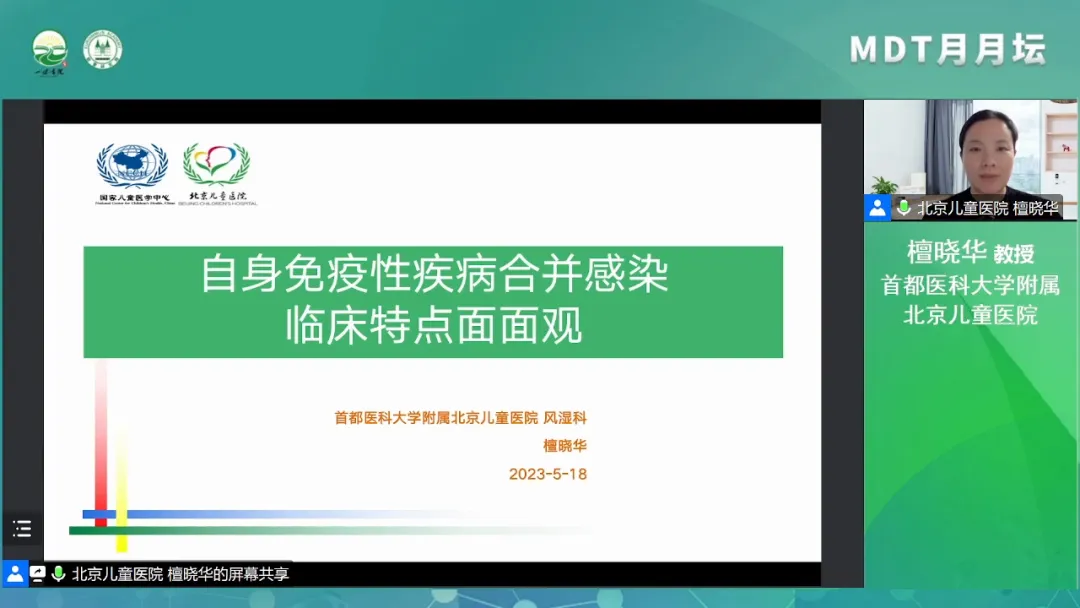 檀曉華教授主要從三個方面:發(fā)病機(jī)制,臨床特點,及兩者之間相互關(guān)系,從臨床角度出發(fā)對自身免疫性疾病合并感染臨床特點進(jìn)行分析。檀教授還根據(jù)寶貴的臨床工作經(jīng)驗出發(fā),從自身免疫和自身炎癥反應(yīng)的大方向講解風(fēng)濕免疫性疾病,及時診斷及有效挽救患兒生命。
