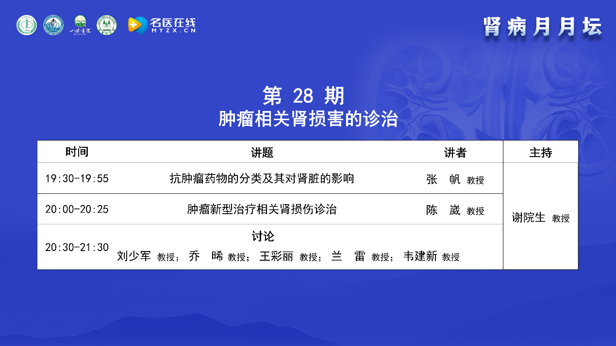 今天的主題是腫瘤相關(guān)腎損害的診治,很榮幸邀請到了在該領(lǐng)域有很深造詣的專家,一起進(jìn)行學(xué)術(shù)講座、點評與討論。
