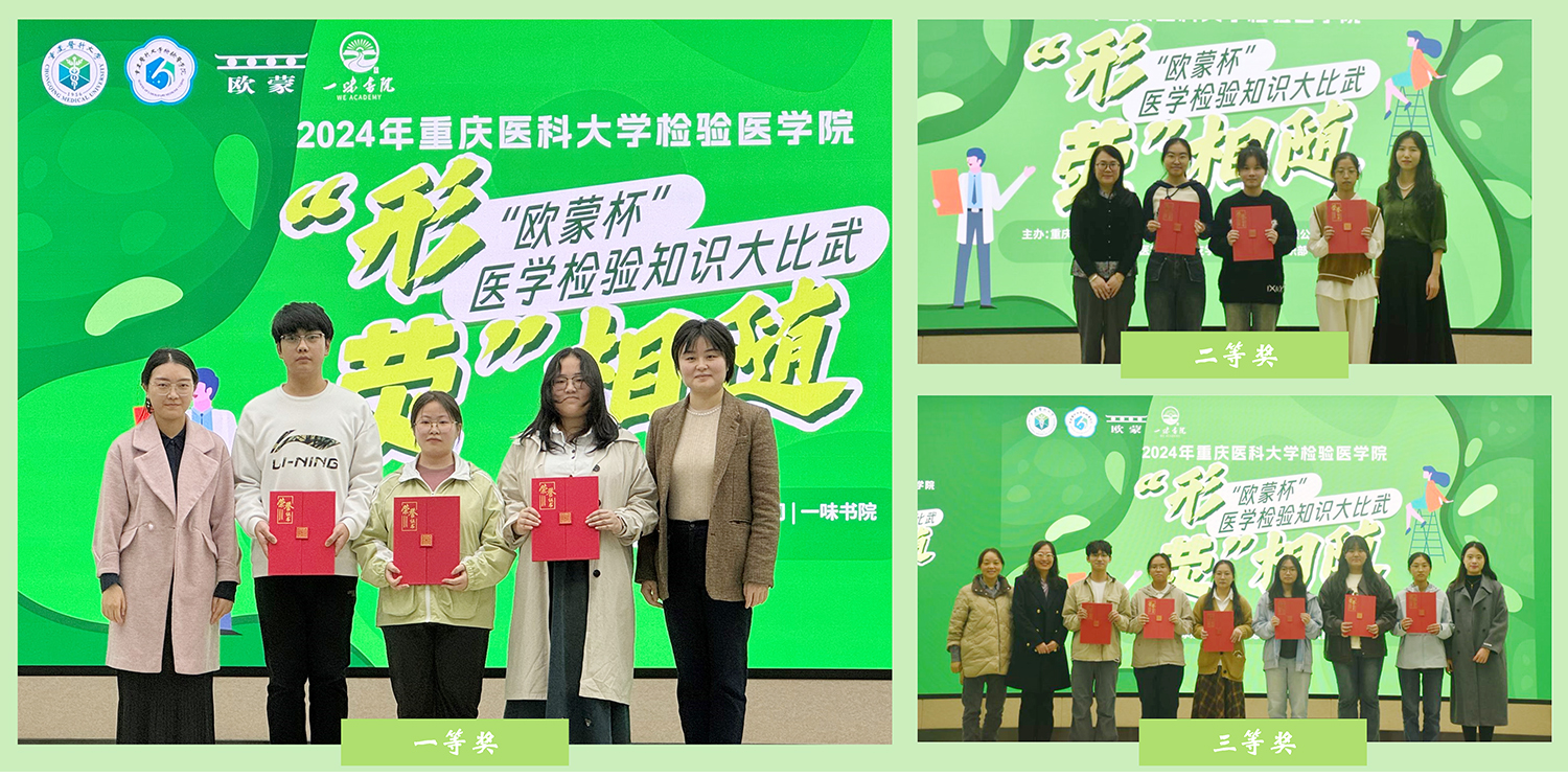 11月17日,由重慶醫(yī)科大學(xué)檢驗醫(yī)學(xué)院、歐蒙醫(yī)學(xué)診斷(中國)有限公司、一味書院聯(lián)合主辦的“歐蒙杯”醫(yī)學(xué)檢驗知識大比武活動在重慶醫(yī)科大學(xué)縉云校區(qū)成功舉辦。重慶醫(yī)科大學(xué)檢驗醫(yī)學(xué)院黨委副書記胡小蕾教授,學(xué)生工作辦公室主任詹阿蘭老師,實驗診斷學(xué)教研室唐敏教授、歐俐蘋教授,學(xué)院團總支書記李曉涵老師,輔導(dǎo)員閻鏡宇老師以及歐蒙嘉賓出席了本次活動。